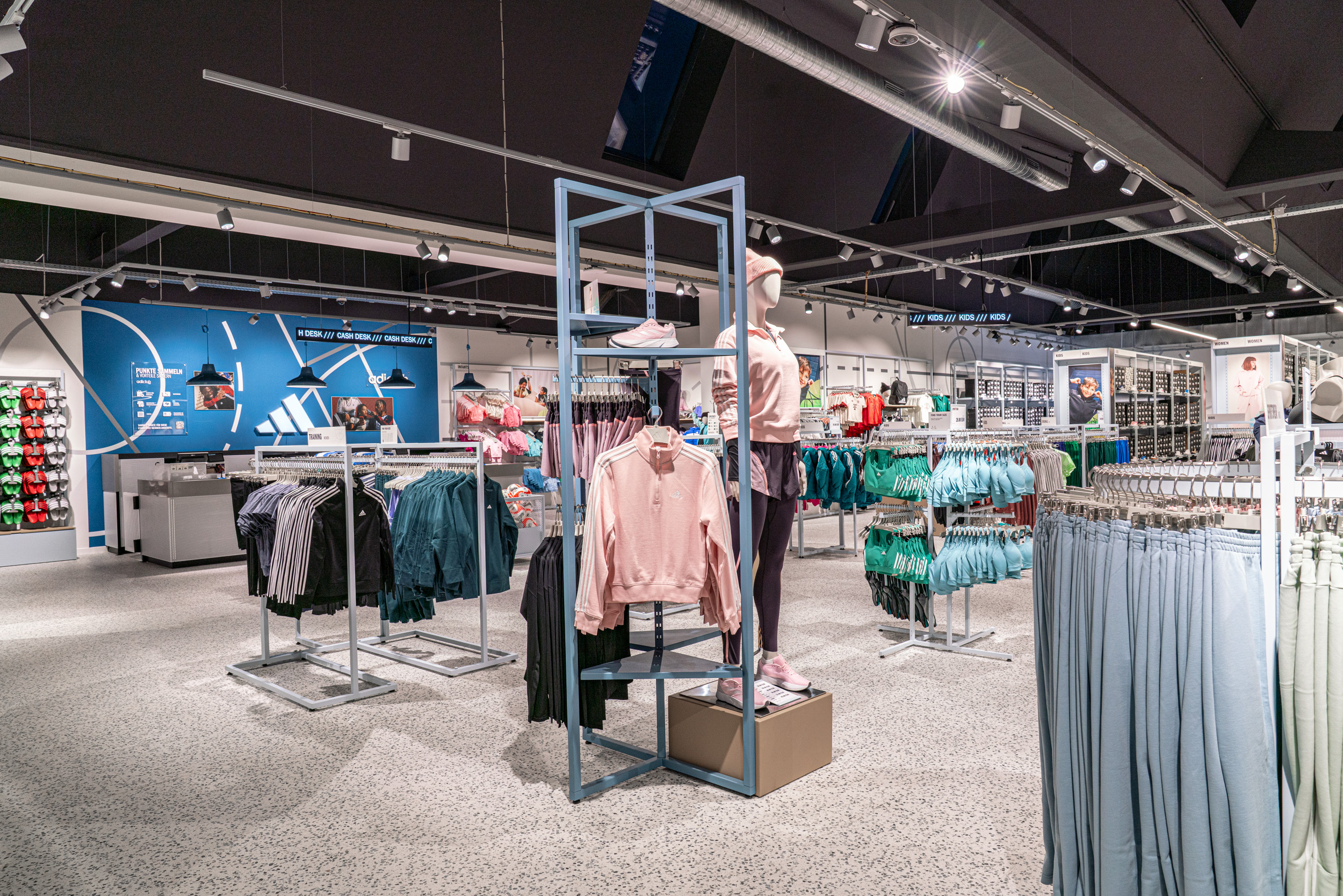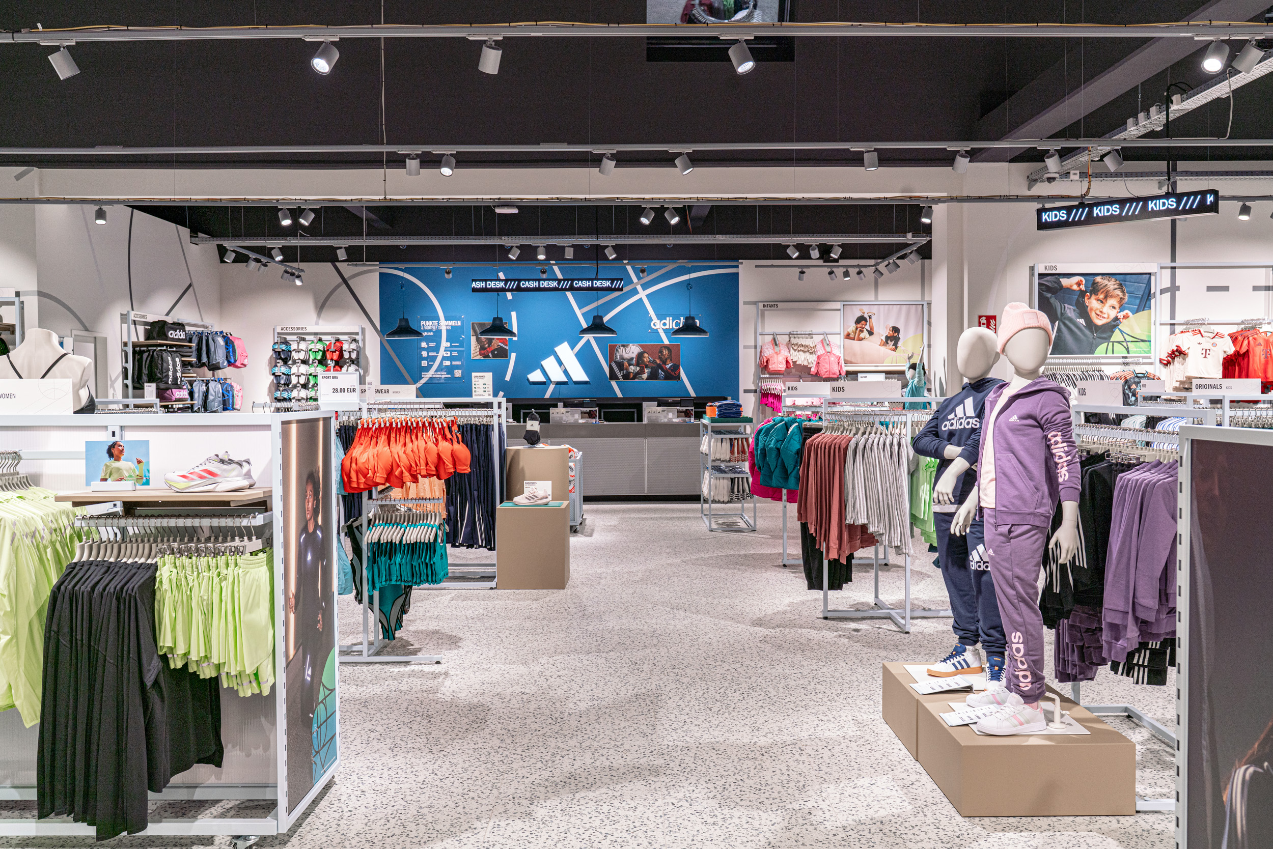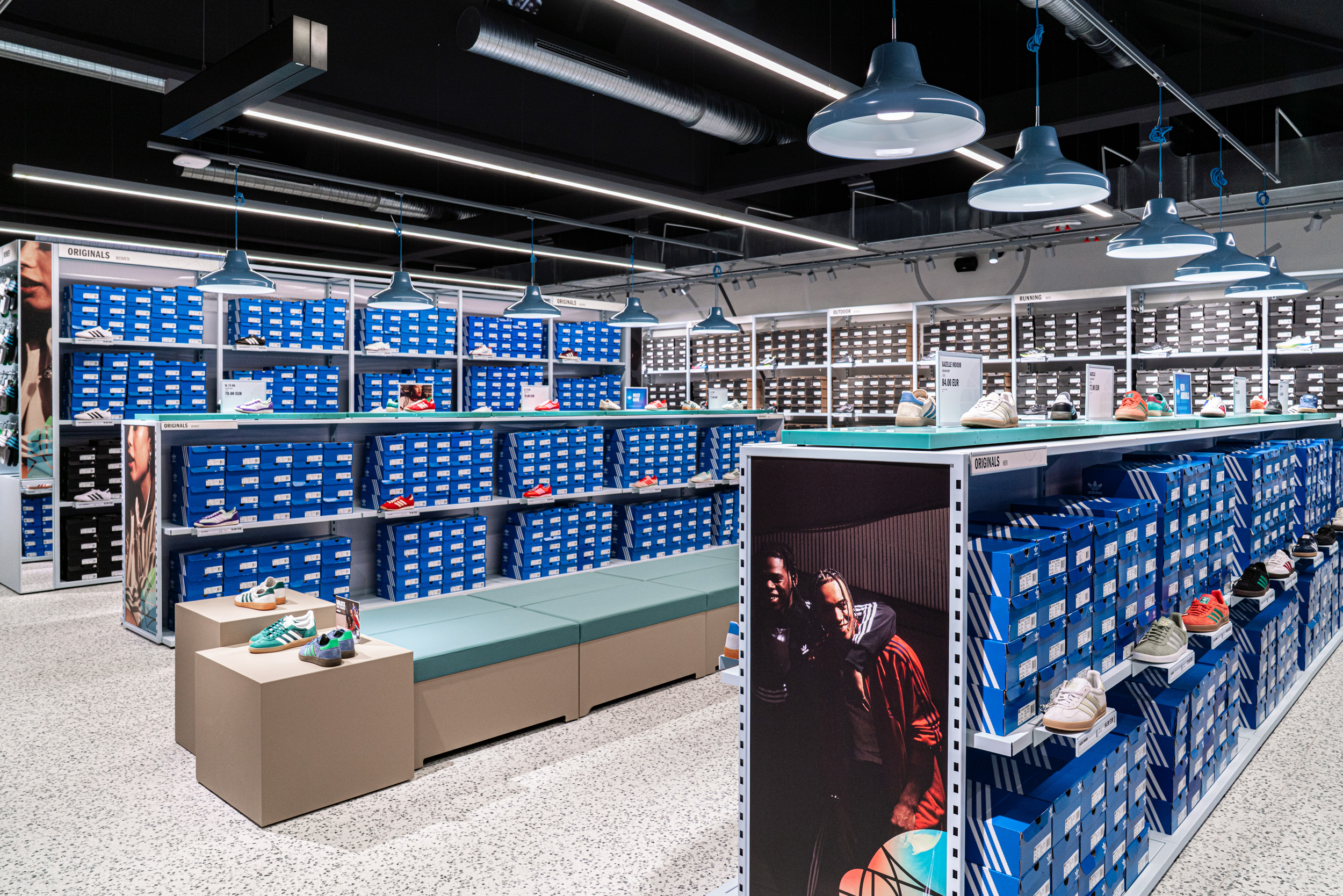 Auf einer Verkaufsfläche von rund 800 Quadratmetern entstand ein wandelbarer Raum, der sowohl funktional als auch atmosphärisch überzeugt. Die Offenheit des Hallenraums ermöglicht flexible Zonierungen und eine klare Orientierung. Die Architektur tritt dabei bewusst in den Hintergrund und schafft eine neutrale, aber hochwertige Bühne für die Markeninszenierung von adidas.