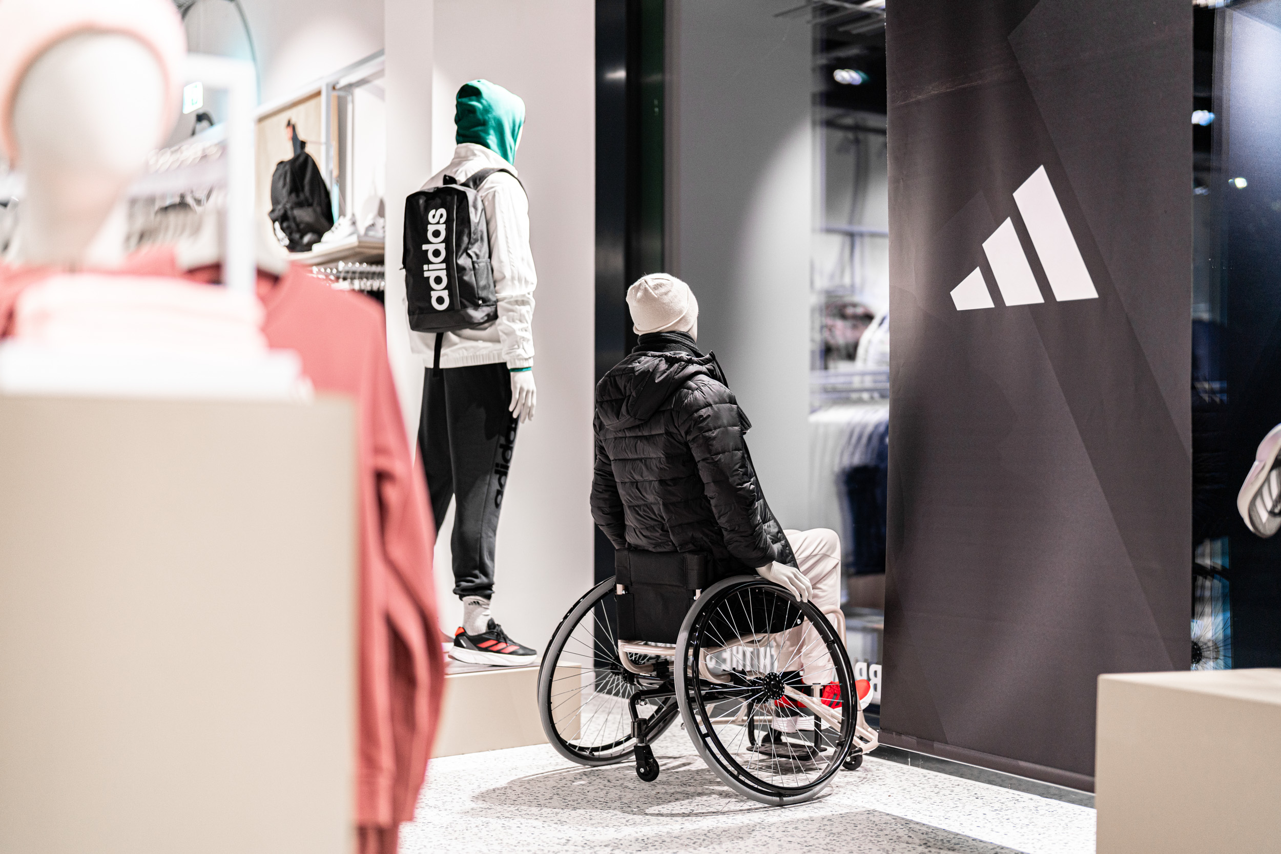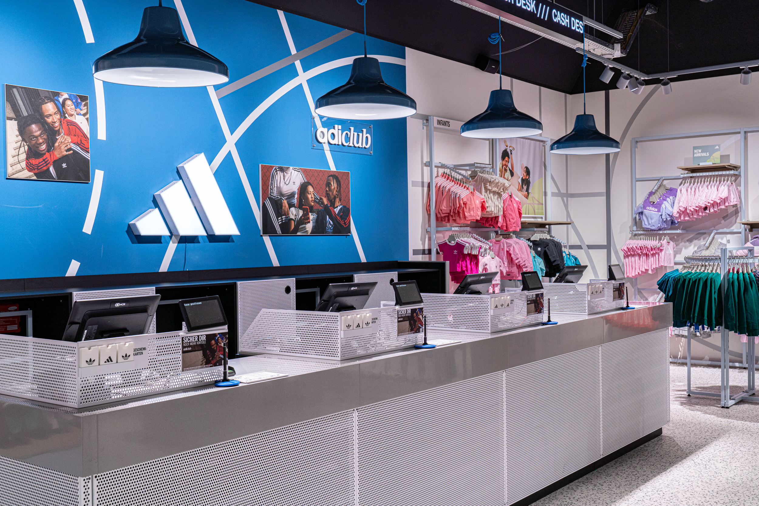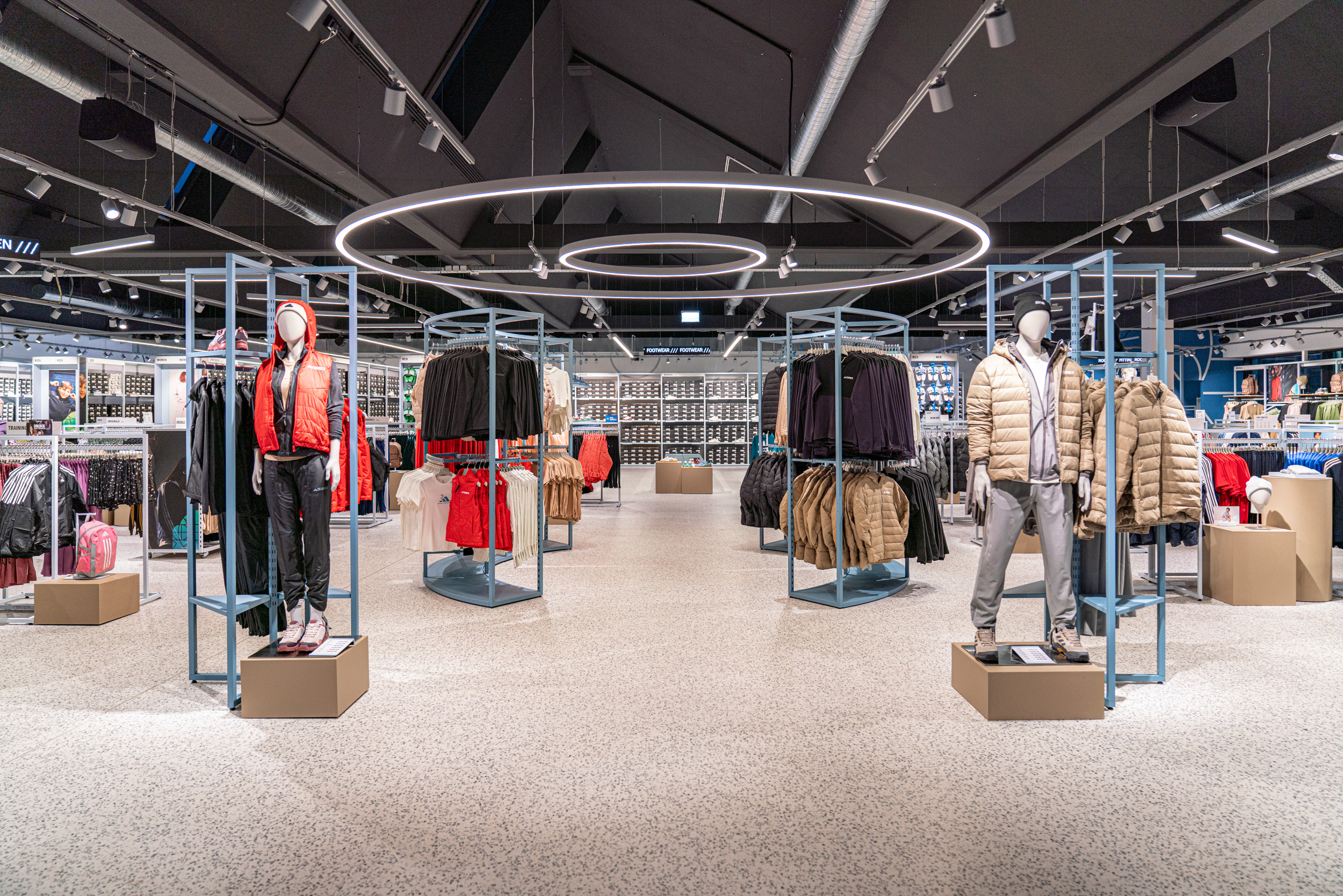 Auf einer Verkaufsfläche von rund 800 Quadratmetern entstand ein wandelbarer Raum, der sowohl funktional als auch atmosphärisch überzeugt. Die Offenheit des Hallenraums ermöglicht flexible Zonierungen und eine klare Orientierung. Die Architektur tritt dabei bewusst in den Hintergrund und schafft eine neutrale, aber hochwertige Bühne für die Markeninszenierung von adidas.