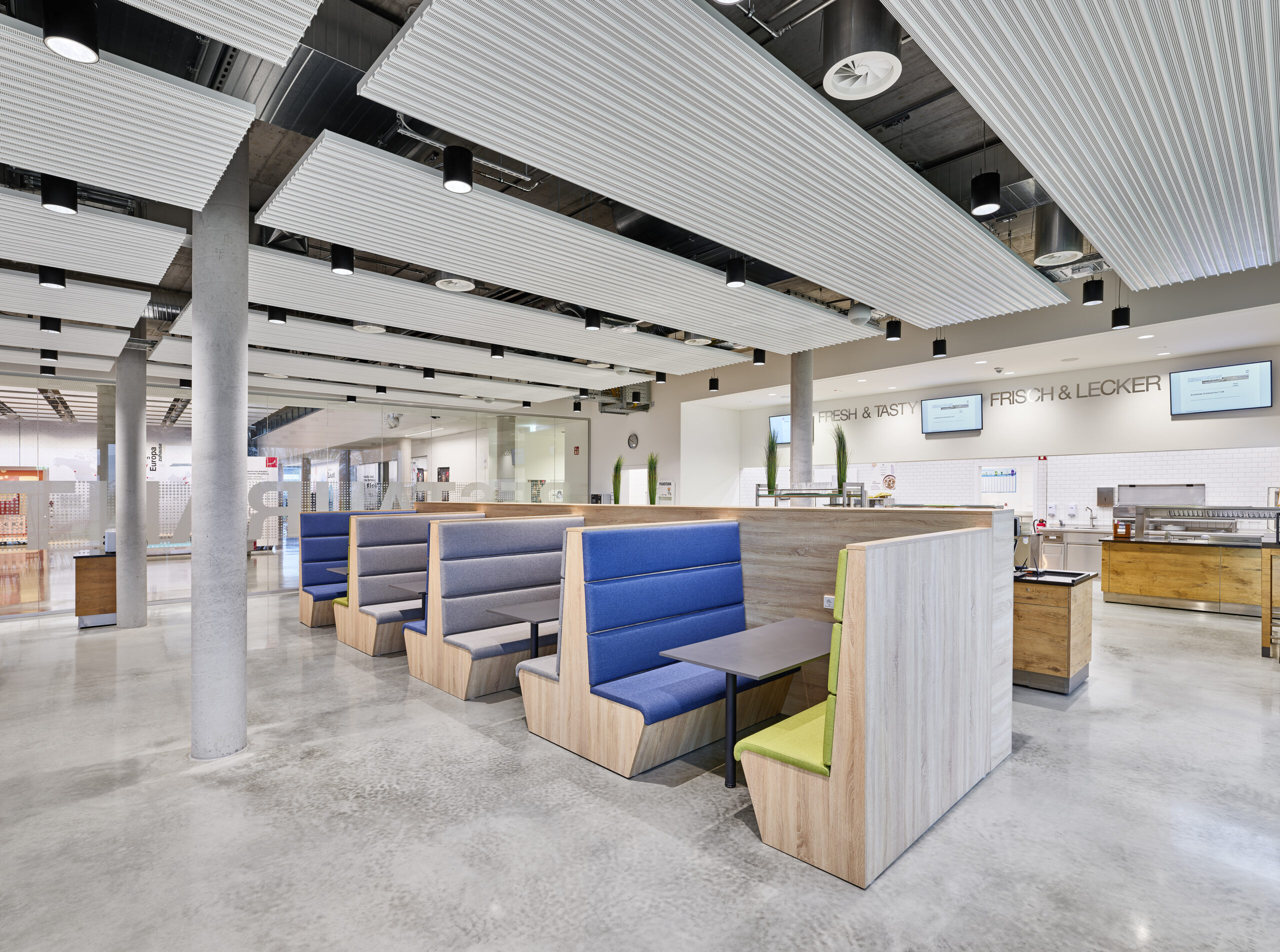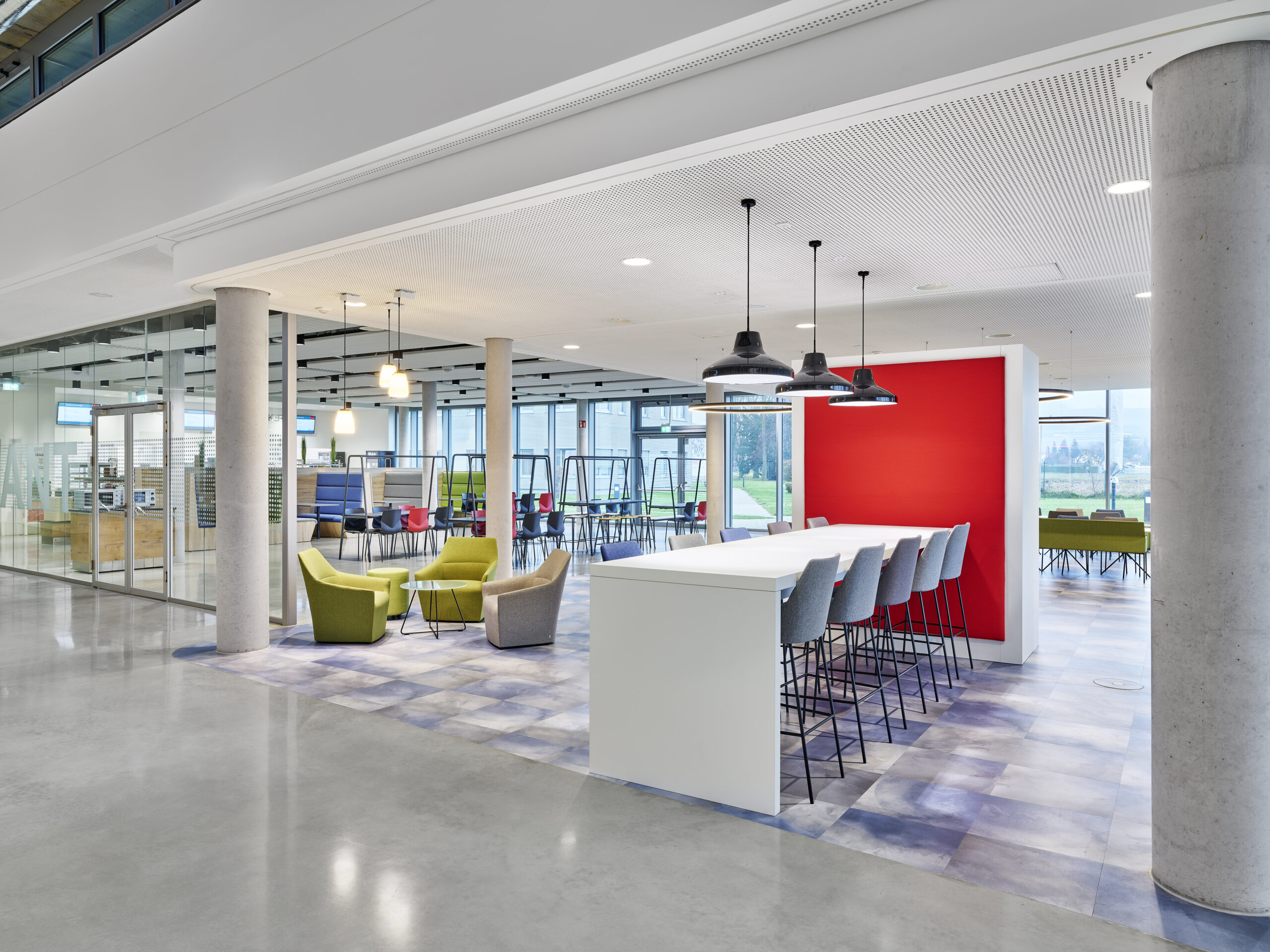 Ein automatisiertes Steuersystem für die Verschattung und künstlicher Beleuchtung steuert die Anlagen entsprechend dem Tageslichtverlauf der Sonne und passt die Helligkeit im Gebäude zwischen 2700 und 6500K automatisch an.