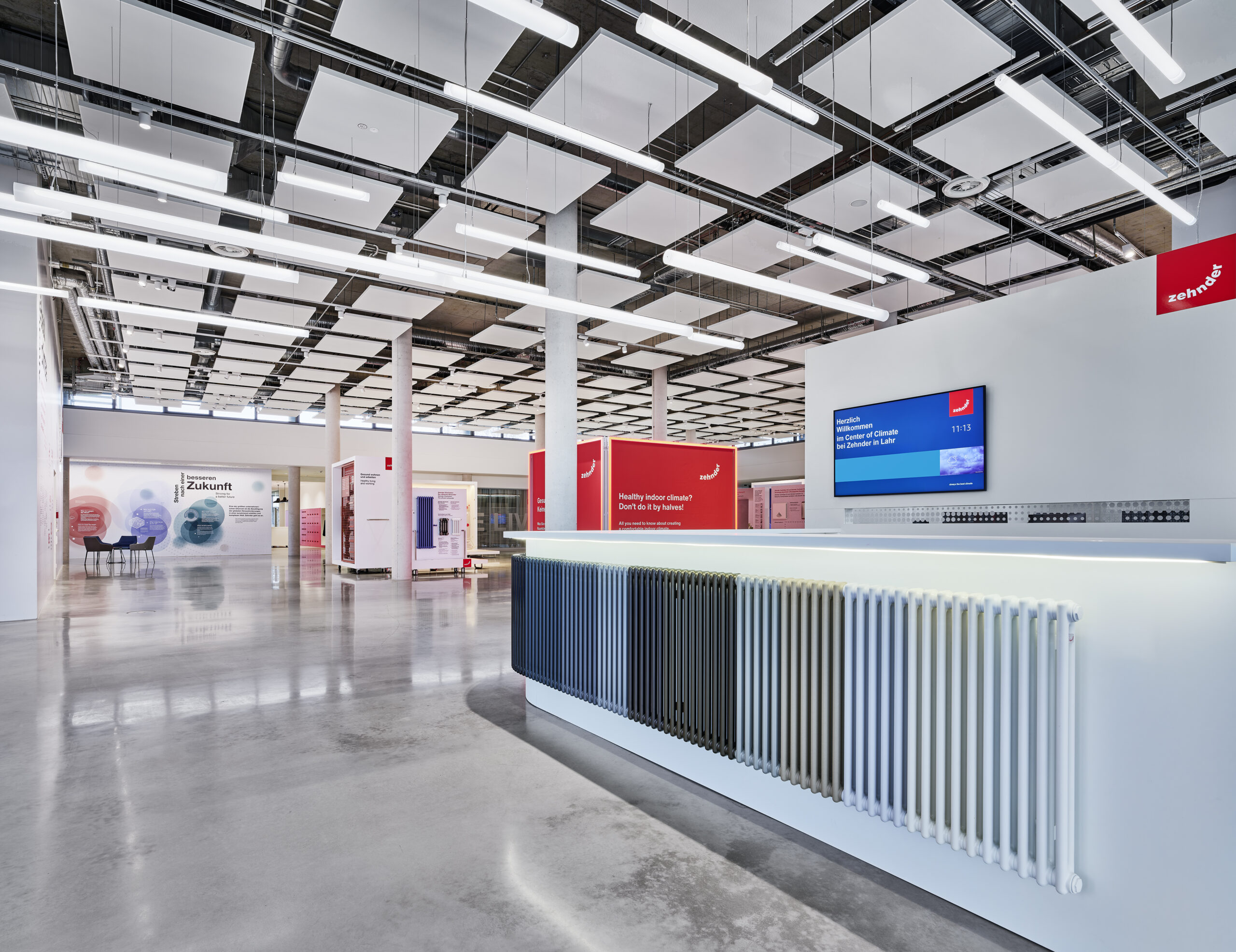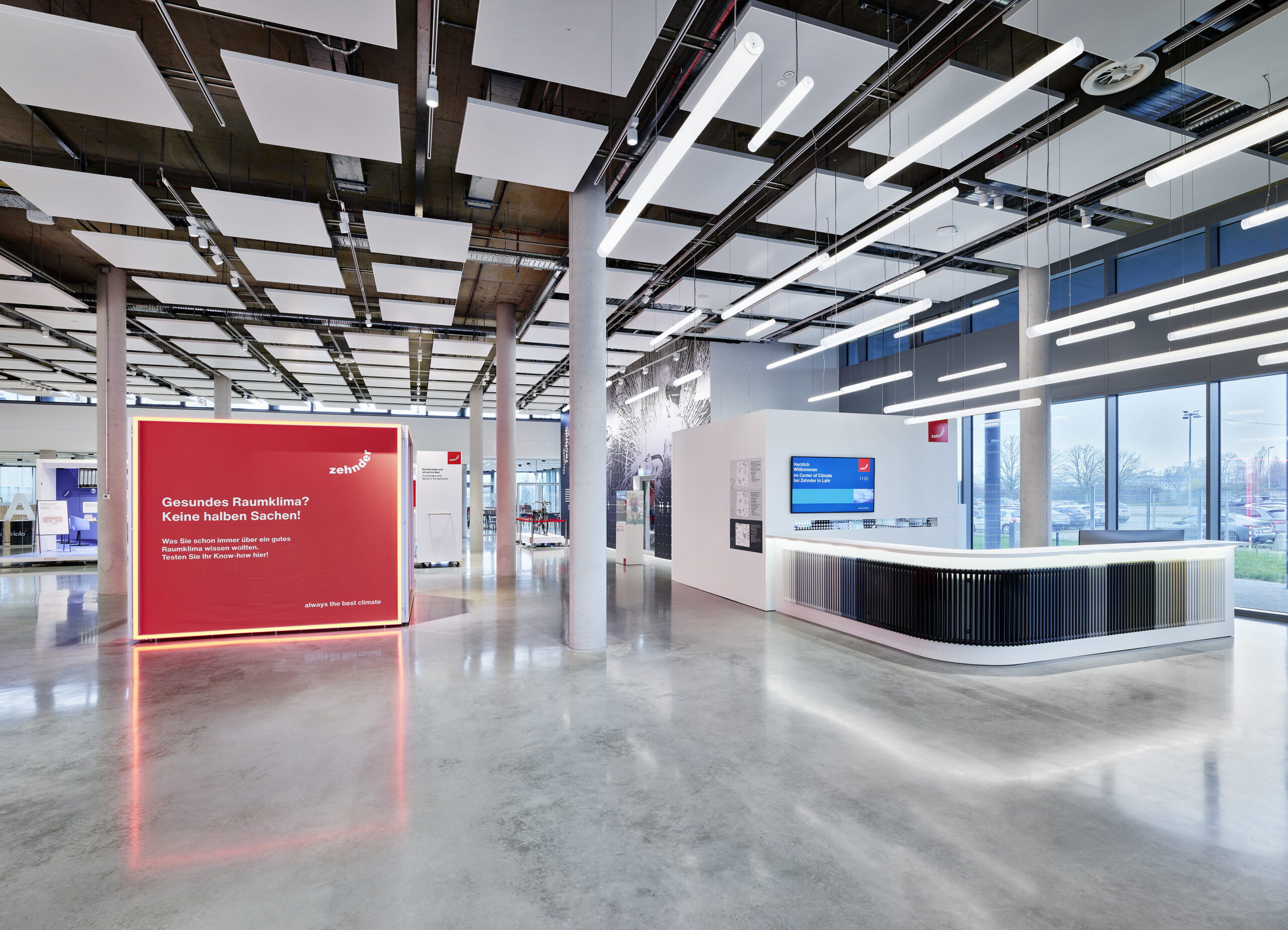 Gleichzeitig bildet der Neubau die neue Adresse des Standortes in Lahr und löst die frühere, schwer auffindbare Zufahrt ab. Stattdessen finden Besuchende nun den Weg zu Zehnder über Center of Climate in der Europastraße in Lahr, dessen Fassade eine prägnante Gliederung aufweist, welche an die Rippen von Heizkörpern erinnert, welche Zehnder zum Beispiel mit dem „Charleston“ seit über 90 Jahren erfolgreich und führend entwickelt, herstellt und vertreibt.
